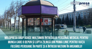 În numele personalului rețelei de chioșcuri de presă Moldpresa Grup, aducem mulțumiri întregului personal medical pentru munca care o depun și luptă zilnic în prima linie pentru viața fiecărei persoane în parte și a întregii națiuni în ansamblu!”
