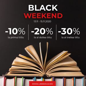 În perioada 13 – 15 noiembrie beneficiezi de o reducere de -10% la primul titlu, -20% la al doilea titlu și -30% la al treilea titlu. În aceste zile, vă așteptăm cu lista de cărți și cu mult entuziasm!