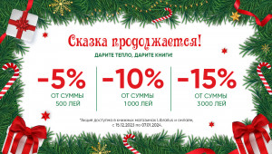 Волшебство этого праздничного сезона продолжается, и мы хотим подарить вам частичку этой сказки. Поэтому сеть книжных магазинов Librarius запускает свою Новогоднюю Акцию! В период с 15 декабря 2023 по 7 января 2024, скидка на покупки до 15% во всех магазинах и онлайн www.librarius.md, где вы можете выбрать книги, развивающие игры и игрушки для самых маленьких.