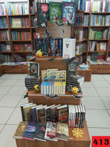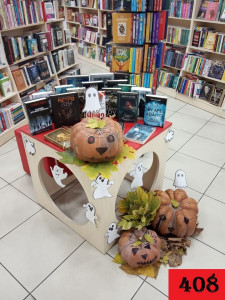 В этом году тематическая выкладка и декорирование книжных магазинов на Хэллоуин была сделана по усмотрению консультантов, без каких-либо правил или помощи.