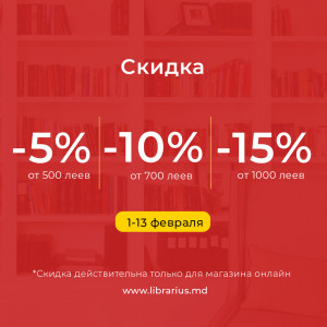 До 13 февраля закажи книги в онлайн магазине и получи скидки -5% от суммы 500 леев, -10% от 700 леев и -15% от 1000 леев.