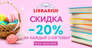 C 15 по 30 апреля 2020, Librarius дарит любимым покупателям скидку 20% на каждую 2-ую книгу, игру или канцтовары!