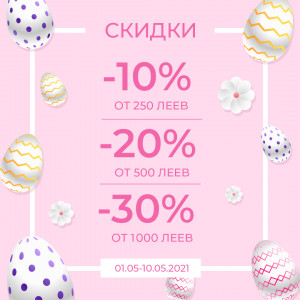 Сделайте покупки в период с 01 по 10 мая 2021 года и получите скидку: