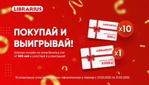 1. Совершите покупку в нашем онлайн магазине www.librarius.md на сумму от 500 леев в период с 21.03.2025 по 31.03.2025.